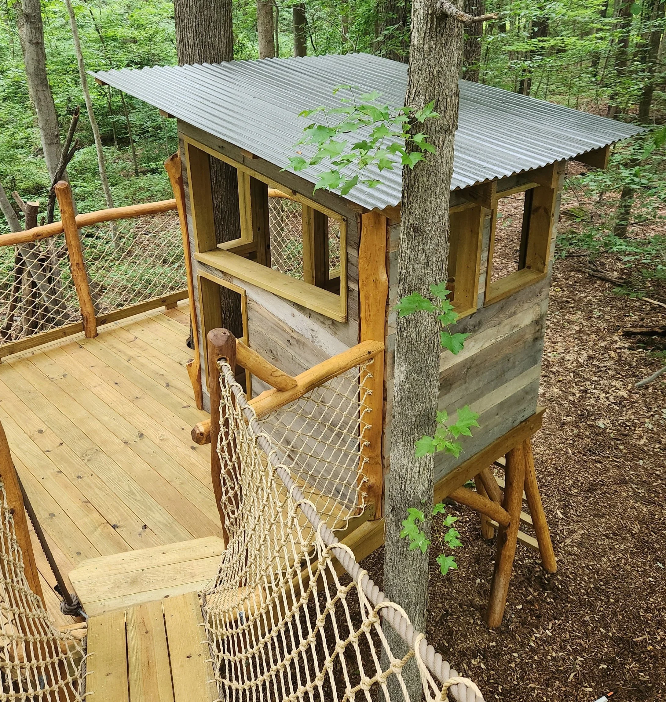 Our 6x6 Treehouse combines a rustic, natural design with the perfect amount of space for outdoor adventures. The standard size offers a cozy retreat nestled among the trees, providing a secure and imaginative space for kids to explore. Crafted with durable materials to blend seamlessly into your landscape, this treehouse adds charm to any backyard. Custom sizes are also available, giving you the flexibility to create a treehouse that fits your unique space and style.
