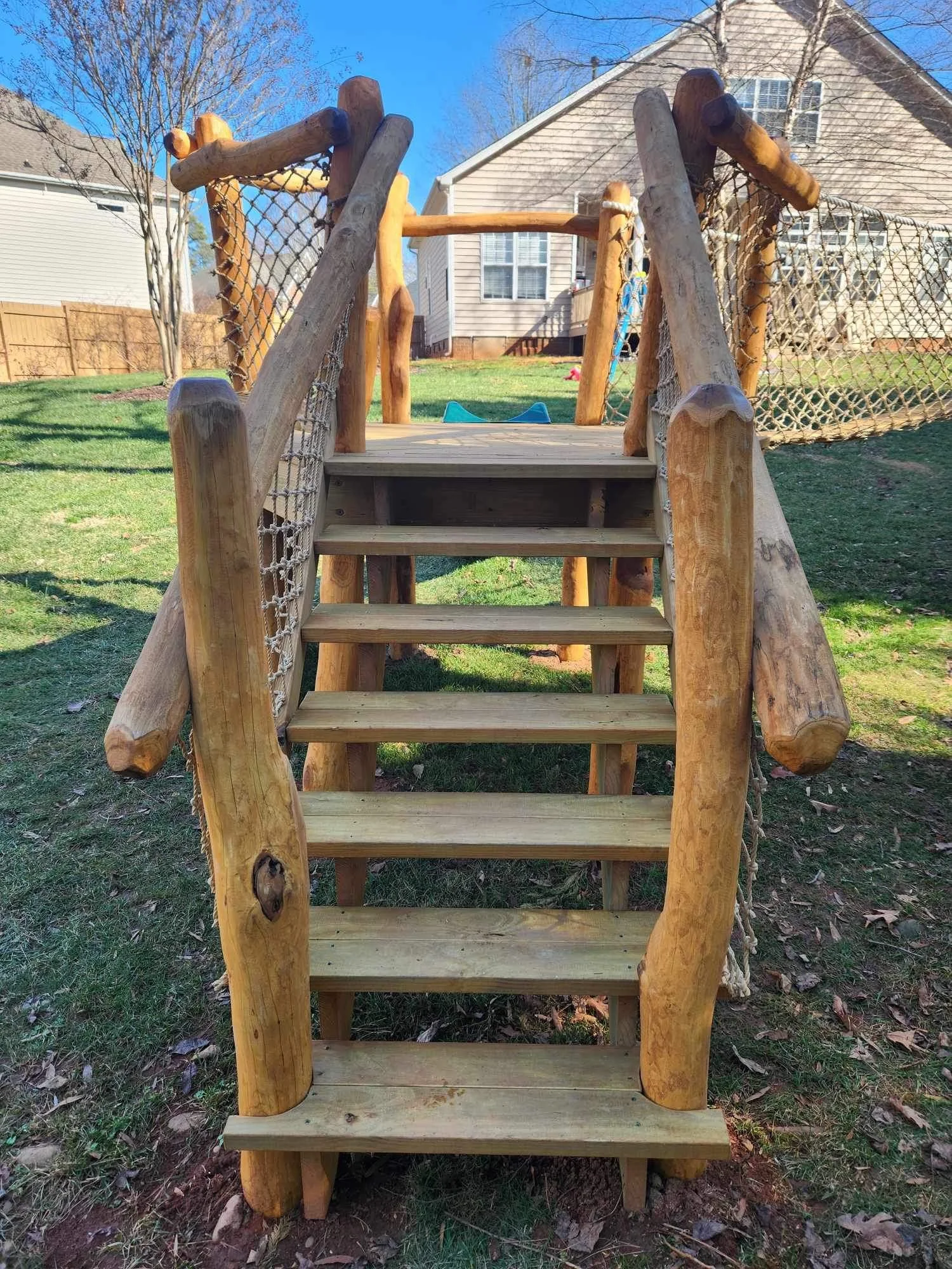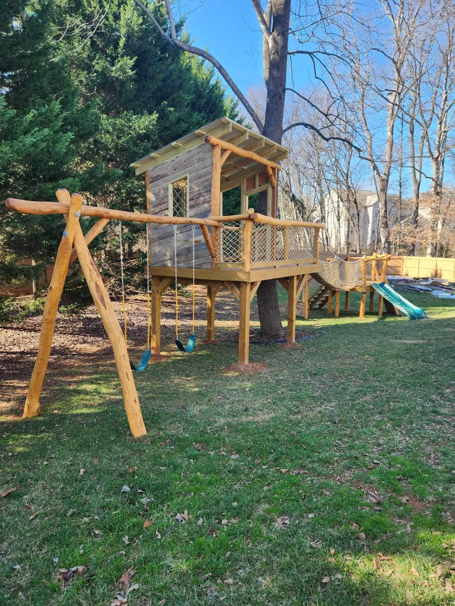 We had the pleasure of working with this family to bring their internet-inspired backyard adventure to life. The standout feature of this project was the family’s request to keep the front wall of the treehouse open, allowing them to easily keep an eye on their young children from both the house and porch. It was a fun and unique design challenge, creating a safe and open space that blended adventure with parental peace of mind. Check out the photos to see how we turned their ideas into a one-of-a-kind backyard escape!